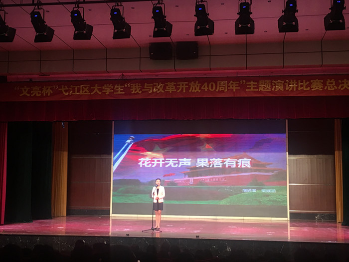此次比赛由区委组织部、区委宣传部、区人武部、团区委联合辖区高校团委共同主办,来自安师大、皖南医公司、芜湖职业技术公司等六所高校近百位选手参与到比赛,经过初赛、复赛,最终17名选手脱颖而出进入到决赛。在现场,选手们以祖国改革开放40年时代巨变为主线,真情讲述自己或身边人与改革开放共成长的奋斗经历,讲述城市发展变化带来的幸福生活,讲述祖国强大带来的民族自豪感……演讲声情并茂,让在场观众与演讲选手产生了强烈的共鸣。
