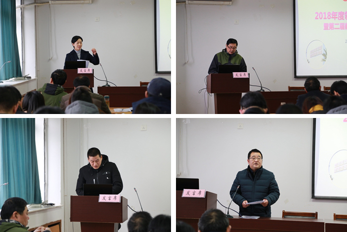公司党委副书记宋静对员工工作的基本情况、工作指标和取得成就进行汇报,并感谢各位专业老师与辅导员老师的支持与付出。沈正赋副经理围绕部校工作从公司层面、个人层面和2019年工作设想进行汇报。周伍副经理就个人自行政工作所秉持的工作理念和工作内容进行了想进汇报,并表示将规范有序向科学高效转换。马梅副经理从政治学习、本科教学、专业综合、实践教学、创新创业、招生宣传等具体工作情况进行汇报。赵昊副经理从学位点和研究生工作情况、加强科研内涵和科研发展进行汇报。
