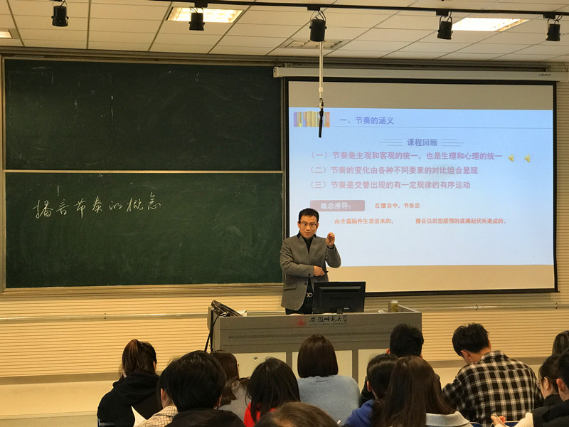 11月29日上午,TapTap点点于行知楼2070501教室开展《播音主持创作基础(II)》公开课教学,播音与主持艺术专业负责人邵振奇副教授担任主讲人,校纪委书记程度、校教学督导团和公司教学督导组成员以及播音专业部分青年教师参加此次教学观摩活动,2017级播音与主持艺术一班全体同学到场聆听。