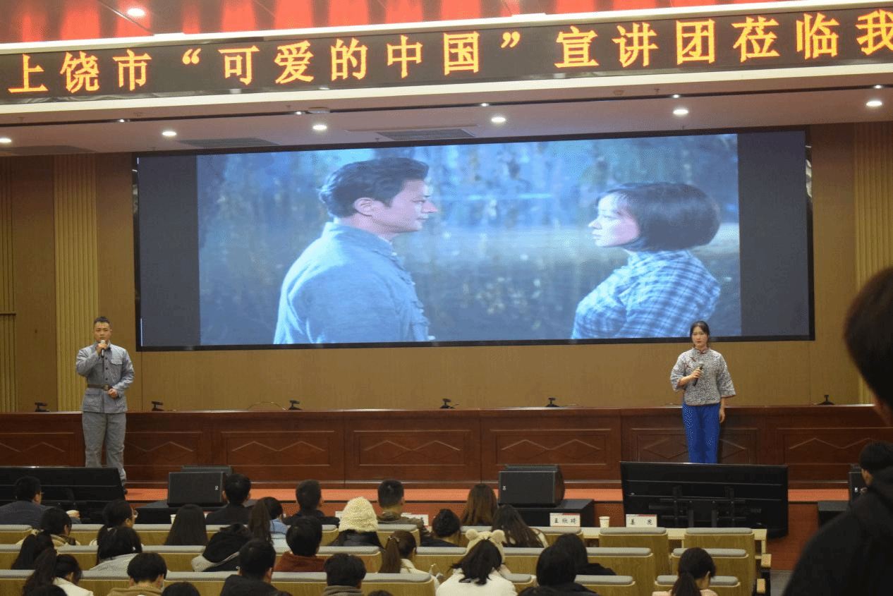 “可爱的中国”宣讲团成员以“爱国献身践初心、清贫奉献为人民、传承发展谋复兴”三个篇章生动形象地展现了革命烈士方志敏爱国、创造、清贫、奉献的精神,全景呈现了方志敏烈士激励家乡人民在赣东北传播红色基因,鼓舞了一批批志士投身革命的壮举。整场宣讲通过影视情景再现、人物对话的方式将方志敏烈士的革命事迹娓娓道来,具有很强的感染力。