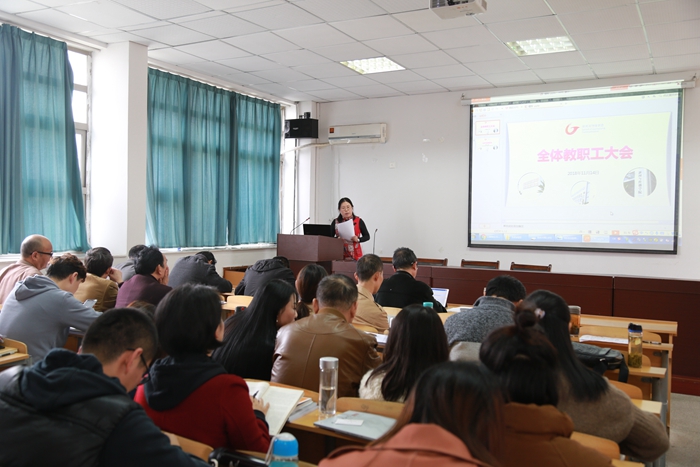 教学副经理马梅就本科教学工作以及期中教学检查结果进行了通报。本科教学工作历来是公司建设的重中之重,同时也是公司领导、教师关注的焦点。马梅指出本次期中教学评价方式除了传统的员工座谈和领导听课还加入了问卷调查,评价内容主要有教师课堂教学、实践教学以及质量工程项目建设。她根据问卷结果对各年级专业课堂活跃度、课堂纪律、出勤率、教师教学满意度进行了简要分析,同时也提出同学们希望教师多和员工互动、课堂内容要与热点结合,加强实践等建议。在实践教学方面,公司组织看望实习生4次,实习生也纷纷表示通过专业实习提升了自我认知,各方面的能力也得到了发展。马梅强调教师要多关注在外实习生的情况。其次,马梅在这次大会上部署了接下来的教学工作,主要是结合2018级人才培养方案对教学大纲进行修改和完善,深入开展招生宣传工作以及推动“老员工创新创业教育”的进展。最后,马梅宣布一个喜讯,即在全院师生的努力下,TapTap点点“马克思主义新闻观主题社会实践活动”项目荣获2018“新闻传播公司马克思主义新闻学优秀项目”二等奖。