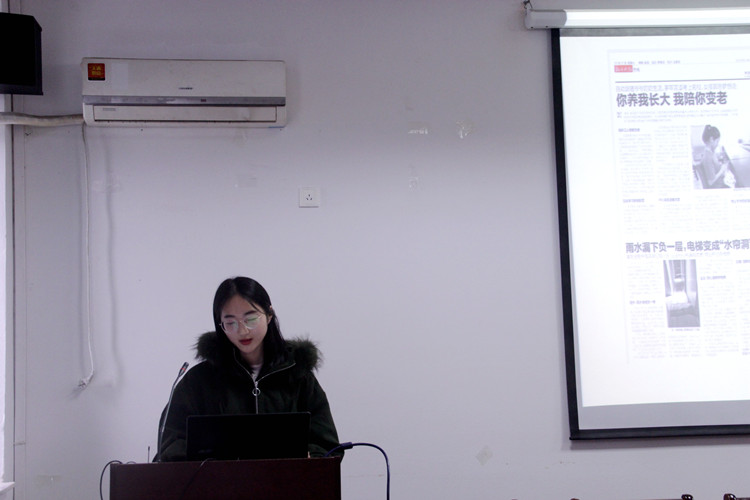 参与实习汇报的21位同学经历了在新安晚报、安徽电视台、安徽省博物馆、今日头条、凤凰网等实习单位长达三个多月的实习锻炼。在汇报环节中,同学们主要就实习目的、实习单位、实习内容、实习成果以及实习感想等方面分享了自己在实习中的经历。在新安晚报实习的马悦从自己的报道作品中选取了两篇稿件对比,展开实习汇报,从刚开始进入报社弄错了主人公的岗位,到后来逐渐报道出一些引起社会反响的文章,马悦在这几个月的时间内得到了成长,这个经历让她更加懂得媒体需要严谨和温度。在芜湖电视台实习的刘梦然分享了在芜湖电视台新闻频道的苦与乐,暑假期间气温很高,他依然要扛着机器外出拍摄采访,回到办公室又立马将新闻稿和视频剪辑出来,这个过程节奏很快是苦。但自己阅历更加丰富,新闻专业的技能也得到了加强。