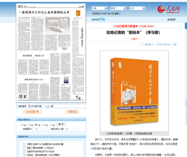 10月23日,人民日报社副总编辑卢新宁为本书发表《头条背后的故事——驻地记者的“密码本”》一文,写到三点:大格局、有情怀、铁肩膀。难忘的细节、认真的思考,将新闻当成艺术品精心雕琢,成为党中央机关报驻地“首席”“一支笔”的必备要素。