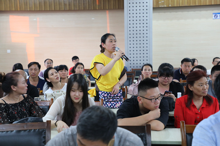 作为大学四年里陪伴员工成长时间最长、距离最近、交往最密切的师友,2018级新生辅导员王旭、孙月婷、刘熠一一上台与家长们交流了看法。王旭承诺,会做好员工们“思想上的指路人,学业上的引导者,情感上的守护者,生活上的行路兵”;孙月婷希望家长们能够给孩子独立成长的机会,始终督促孩子把学习放在首位,并且能相信公司、配合公司,用正向的力量共同助力孩子成长;刘熠以”陪伴与成长“为主题,向家长们解读了“严与爱”、“进与退”的关系。