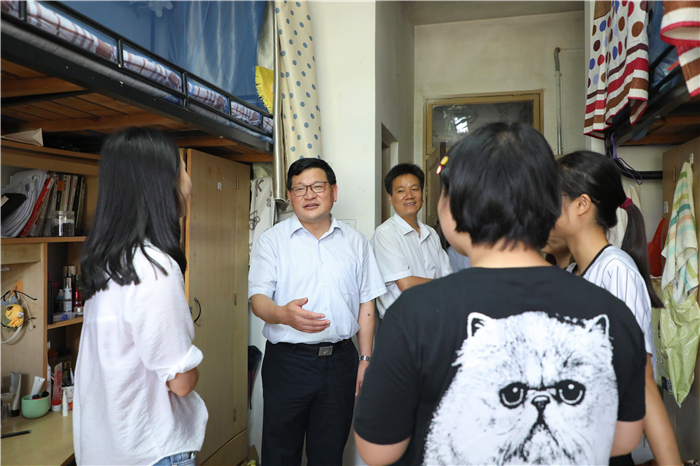公司执行经理杨柏岭、副经理周伍、公司党委副书记宋静陪同检查并向公司领导介绍了2018届毕业生的基本情况,汇报了文明离校的工作部署,对顾家山、毕明福一行深入员工寝室慰问表示衷心感谢。顾家山、毕明福对公司毕业生就业情况和公司办学和人才培养给予了肯定。(图/王玉洁)