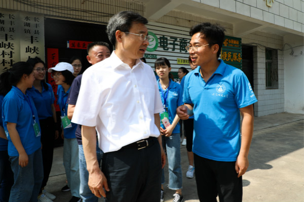 7月21日,省发改委主任张天培带领省水库移民管理局局长朱坚强、省水库移民管理局三峡移民处处长郑运恒等赴长丰县水湖镇丰峡村,实地调研三峡移民信访维稳工作,并召开座谈会,听取县、镇、村工作汇报,座谈下一步化解三峡移民信访积案工作措施。长丰县副县长方捷、水湖镇党委书记、镇长杨维国等陪同调研。调研期间,张天培一行亲切接见了公司赴江北“关注三峡移民,助力乡村振兴”暑期社会实践团队。公司团委副书记、团队指导教师马星宇向张天培等汇报了团队调研主题、工作进展、团队构成等情况,张天培要求实践队员要落小落实调研工作,实事求是、真实全面地反映三峡移民的生活生产状态,在实地调研的基础上注重舆论引导,发挥专业所长,形成富有建设性的调研成果。张天培等还热情与调研团队师生合影留念。