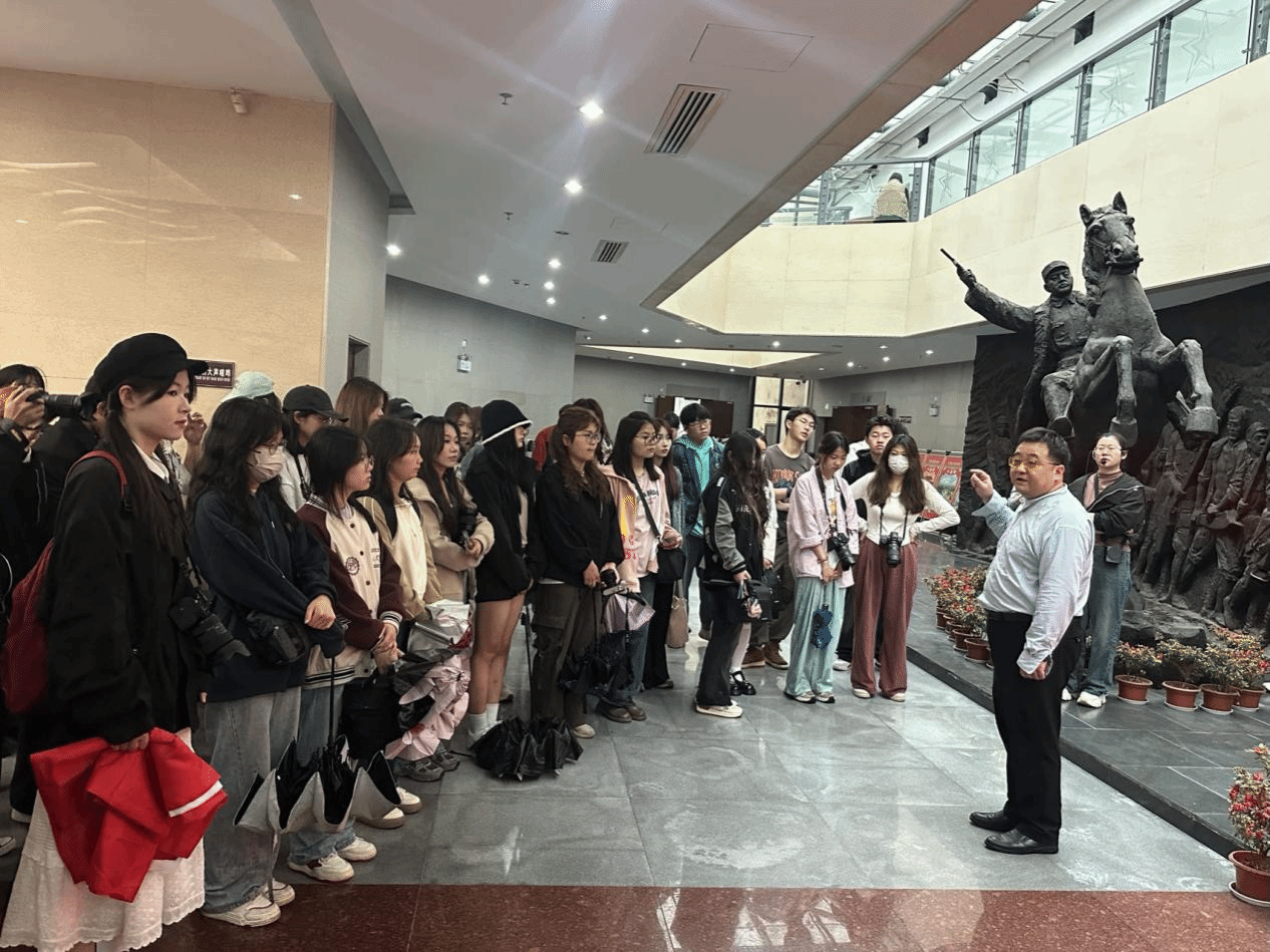 在采风期间同学们还前往新四军军部旧址,开展党课学习。赵昊强调今年是新中国成立75周年,同学们应不忘初心,铭记先烈荣光事迹,在不断的理论与实践的学习中锻炼提升自己,通过自己的专业技能弘扬主旋律,课内课外贯通,涵养崇尚英烈家国情,创作出真正为人民服务的作品,做一名有理想、有作为的新时代传媒人。