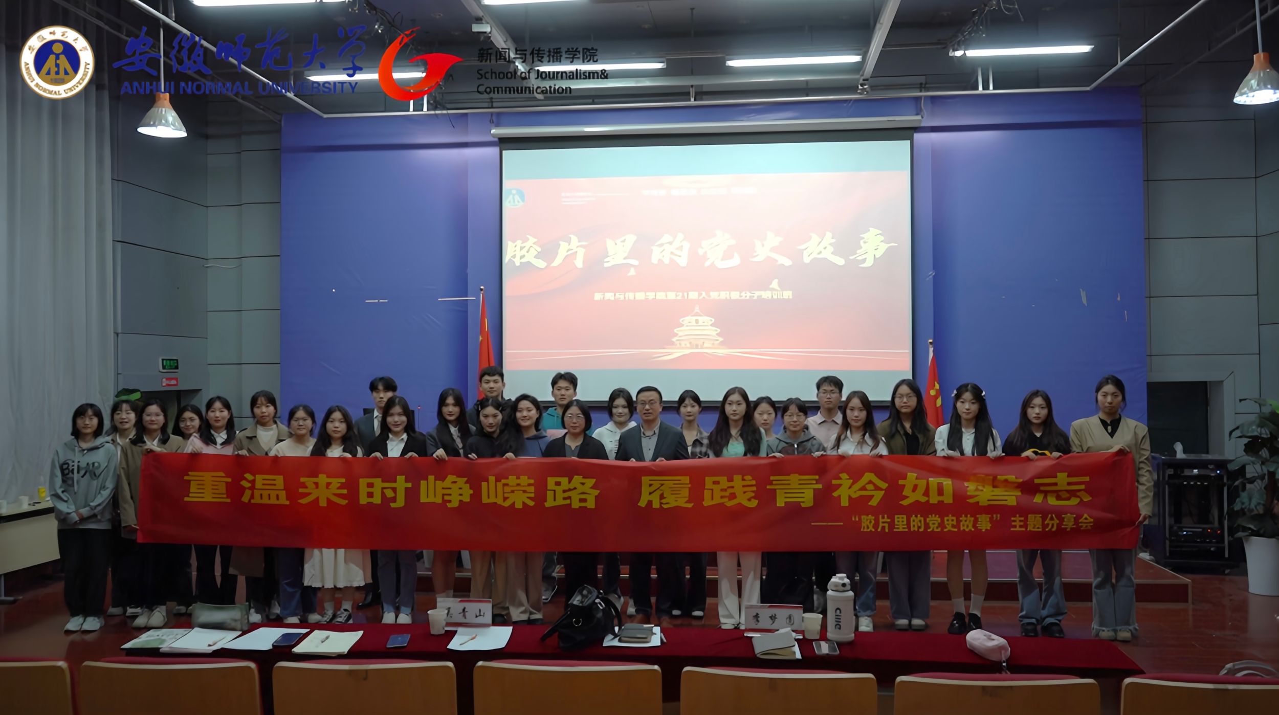 本次实践活动汇报共十组,分别为大家带来了《红星闪耀中国》《建军大业》《扫黑·决战》《1950他们正年轻》等10部精彩的党史教育主题影片。各小组撰写推荐词,明确分工,通过演讲、朗诵等多种创新形式向大家精彩展示了胶片里的党史故事。在一段段影片中,让人真切地回到了那段激情燃烧,烽火连天的峥嵘岁月,深深地感受到中国共产党领导人带领全国各族人民进行伟大革命的光辉历程,深刻感悟革命先辈的坚定信念和英雄壮举。