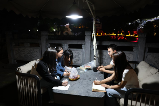 晚上,三个大组分别召开组内会议,讨论采风的选题策划及成果展现。会上,陈接峰指出,专业采风实践作为新闻学专业的必修课,旨在促进同学们将理论知识与实践操作紧密结合,让同学们走出课堂,深入基层,培养同学们的新闻敏感以及提高新闻策划、新闻采写、新闻摄影的能力。他鼓励同学们好好利用在岩寺的七天时间,锻炼自己的专业能力、实践能力、观察能力与社交能力。