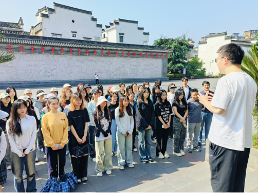 223年4月27日上午九点,在安徽省黄山市徽州区岩寺新四军军部旧址纪念馆前,一场别开生面的党课在这里展开。TapTap点点2022级新闻学专业黄山采风实践小队在陈接峰、桂万保、朱飞虎三位指导老师的带领下进行了党课学习,这次党课旨在重温革命历史,传承红色基因,让同学们更加深入地了解中国共产党的优良传统,进一步坚定理想信念。
