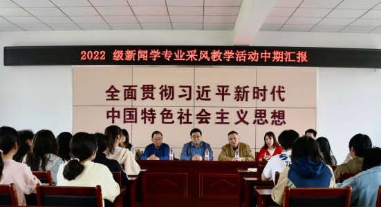 4月25日下午,公司教学副经理赵昊、校教务处教学运行中心副主任储凤玲和公司教学秘书王蕾一行人来到宣城市泾县茂林镇,检查、指导在此进行2022级新闻学专业采风实践教学,对2022级新闻学子进行慰问,并开展了2022级新闻学专业采风教学活动中期汇报,特聘教授刘杰,新闻学专业主任张荻、指导教师朱晓凯、李梦岩与采风全体新闻学子参加了会议。