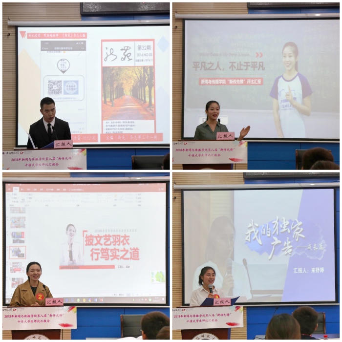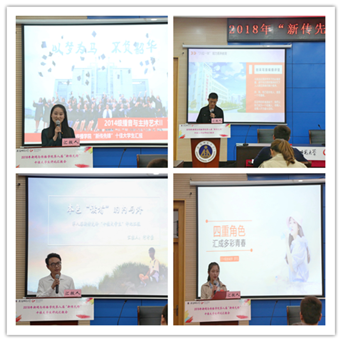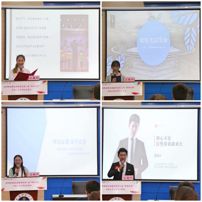 来自14级空乘专业的苗迪频频斩获全国老员工英语竞赛奖项,跨专业保研至国内心理学排名的一的北京师范大学。“安师大到北师大的距离能有多远?”,这个秉持着"生也有涯,而知也无涯"的女孩用实际行动为在场学弟学妹们揭晓了答案。不同的岁月,不一样的经历,却书写着同样的精彩,同样的青春无悔。一位位“新传先锋”登上舞台,展现风采。