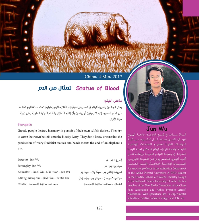 2017年5月1日-5月7日,第八届保加利亚国际动画电影节在首都索非亚举行,共收到来自87个国家和地区的1117部动画片参赛作品,经过初审和复审,最终评选出78部优秀动画短片参加展映,其中中国大陆5部,中国香港1部,中国台湾3部,吴浚导演的沙动画《Statue of Blood》入选主题竞赛单元。
