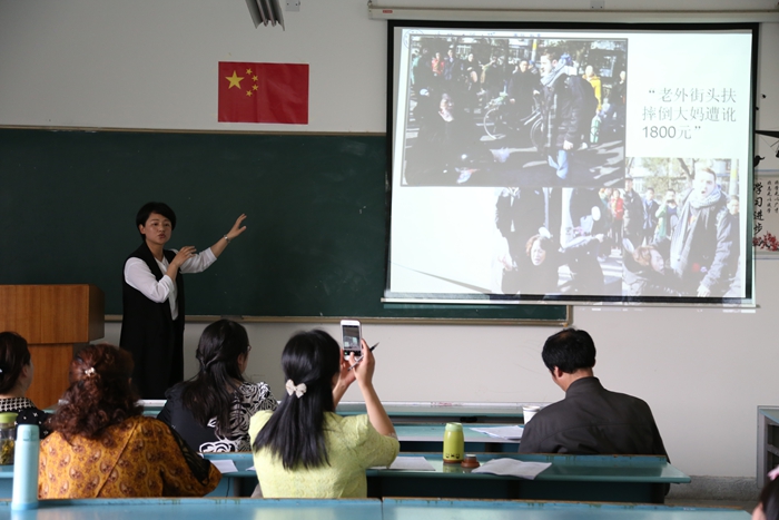 评委们针对青年教师在比赛中的精彩表现给予了充分肯定,并针对参赛老师们在教学展示过程中出现的课程选题、课程容量、课程内容、案例选取、节奏把握、教学语言、板书与PPT设计以及教师着装和精神状态等方面的进行了指出,并提出了改进意见。马梅在最后的总结中指出,参赛老师们要注意课程容量不能过多,板书要突出设计不能过于简略,要处理好内容、知识点深与浅的关系,要注意把声音的高低与课程内容相结合以及要注意PPT内容和格式等问题。