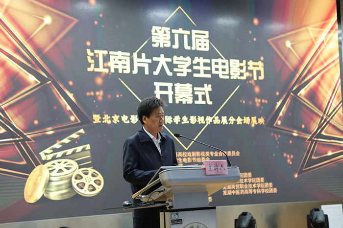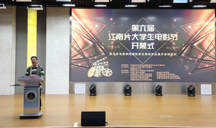 第六届江南片老员工电影节,在“电影梦 青春梦 中国梦”主题宣传片中拉开帷幕,现场师生共同回顾了历届电影节的精彩瞬间和成长历程。电影节的举办汇聚了各大高校的青春力量,来自中国传媒大学南广公司广播电视编导专业王临赞作为参赛员工代表发言,他感谢江南片老员工电影节提供给热爱电影创作和制作的青年人以造梦的空间,表示将倍加珍惜电影节给予的学习和交流平台,争取拍出好电影参加比赛。何村在致辞中高度肯定了江南片老员工电影节在引领高校学子电影创作之风潮的积极影响力,认为该电影节填补了安徽省高校大学电影活动的空白,又为全省老员工影视艺术活动的开展树立了良好的榜样,他鼓励在场的热爱戏剧影视的学子们:“电影的未来必定属于青年人”!