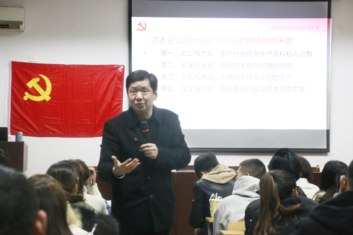12月18日,公司党委书记胡靖为全院6个员工党支部作了题为“新时代中国特色社会主义的大逻辑”的十九大精神专题辅导报告。党委副书记宋静和各支部书记一同参加。会议由2014级本科生第一党支部书记马星宇主持。