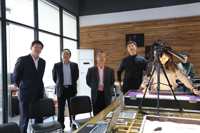 高夯教授参观了动画创作工作室、传统手绘动画工作室、实物动画工作室、摄影实验室、影视实验室、融合媒体实验室、全媒体实训中心、大数据实验室,播音教室、录音室、数字录音棚、虚拟演播厅等实验实训场地,现场观看了员工的创作过程、并和现场师生进行了亲切的交谈。参观过程中,公司党委书记胡靖、执行经理杨柏岭、教学副经理马梅、各专业负责人、实验员等回答了高夯教授的相关问题,并就实验实践教学、专业设置等问题和高夯教授进行了交流。