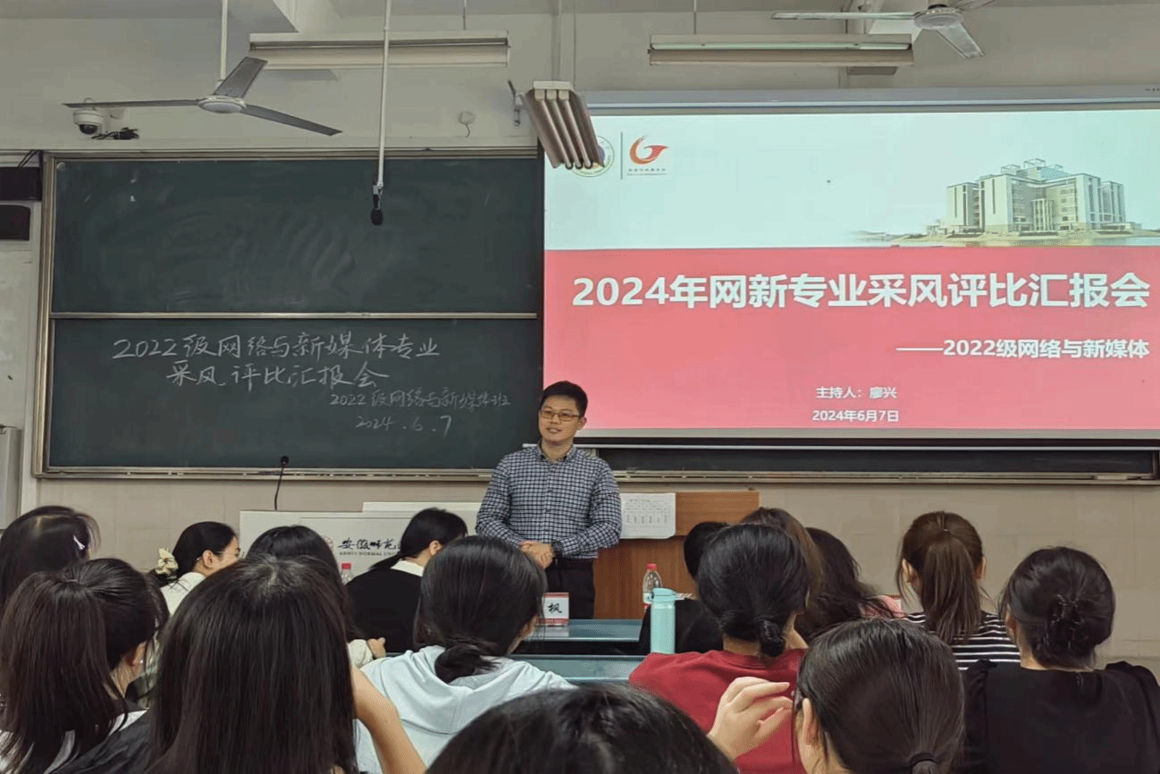 为巩固实践成果,增进同学们的专业实践能力和水平,2024年6月7日,2022级网络与新媒体专业于2050101教室召开了采风评比汇报会。此次汇报会是对2022级网络与新媒体专业员工在芜湖市进行的采风实践教学活动的成果展示,会议由网新班班长廖兴主持,TapTap点点副经理秦枫、网络与新媒体专业主任林燕、指导老师杨帆、章文宜、辅导员李梦圆担任评委,2022级网络与新媒体专业全体同学参会。