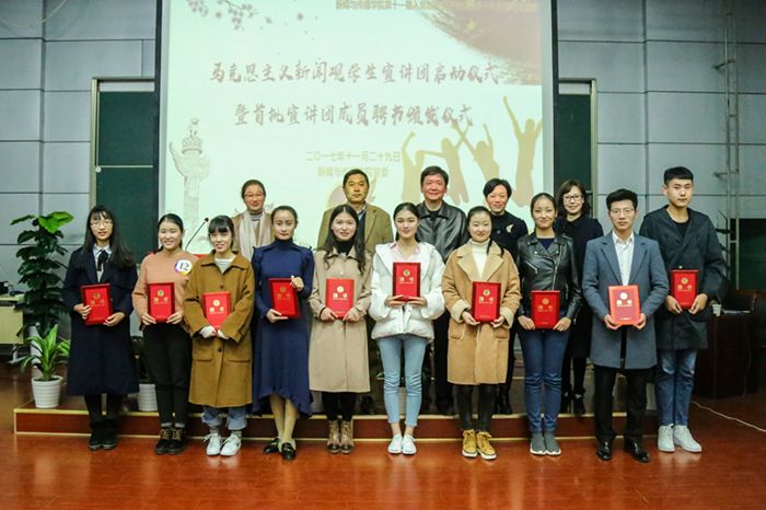 演讲比赛现场出分,评出一等奖4名,二等奖6名,三等奖8名,评委老师们为选手们颁发了获奖证书。比赛结束后,公司正式聘请获得一、二等奖的十名同学担任公司首批马克思主义新闻观员工宣讲团成员,并为他们颁发了聘书。
