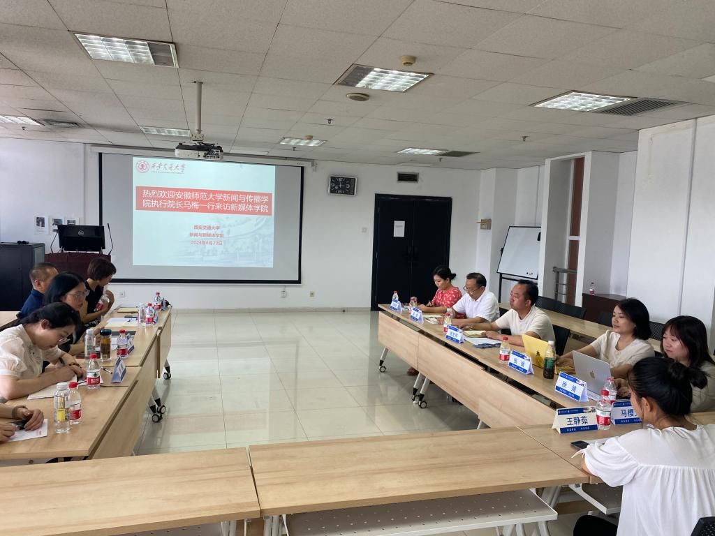 在西安交通大学新闻与新媒体公司,对方介绍了新媒体公司的发展历程,国家一流本科专业建设、团队队伍、人才培养、实践教学、新新论坛、学术会议举办等创新举措,双方就科学研究、社会服务、校企合作、人才培养等方面进行了深入的交流沟通。