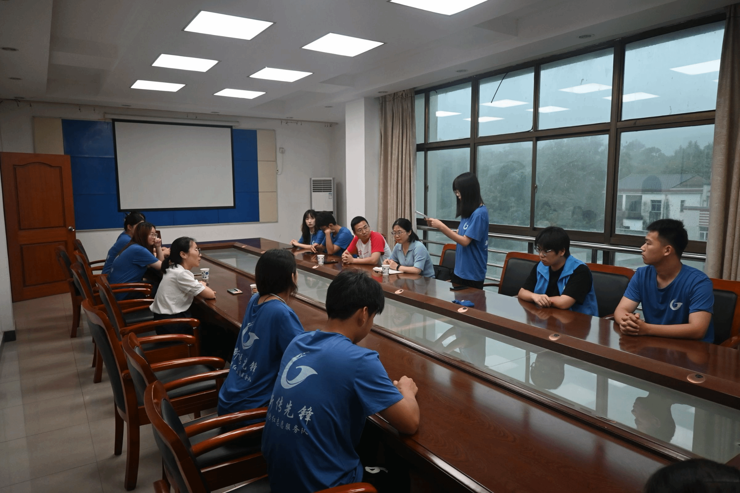 7月13日下午,马梅和马星宇一行冒着暴雨来到云岭镇,云岭镇党委委员谢静和镇团委书记黄学敏热情接待并介绍了镇情镇貌,随后主持召开了座谈交流会,“泾韵文传,支教情牵”团队队长徐冰月代表团队作了实践阶段性报告,团队其他成员分别结合义务支教、采写调研汇报了实践心得和感悟。