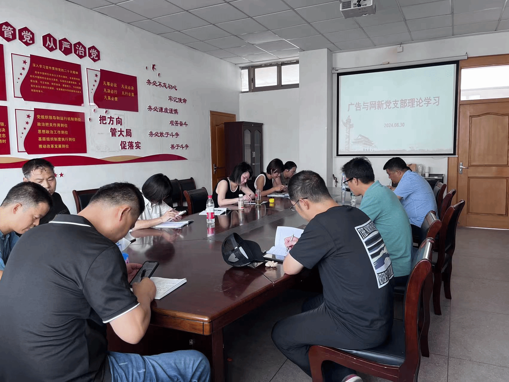 本网讯 8月30日下午,广告与网新党支部在公司507会议室召开专题会议,集中学习党的二十届三中全会精神,公司党委委员、副经理秦枫开展了党的二十届三中全会精神宣讲,支部全体党员参加会议。会议由支部书记罗铭主持。