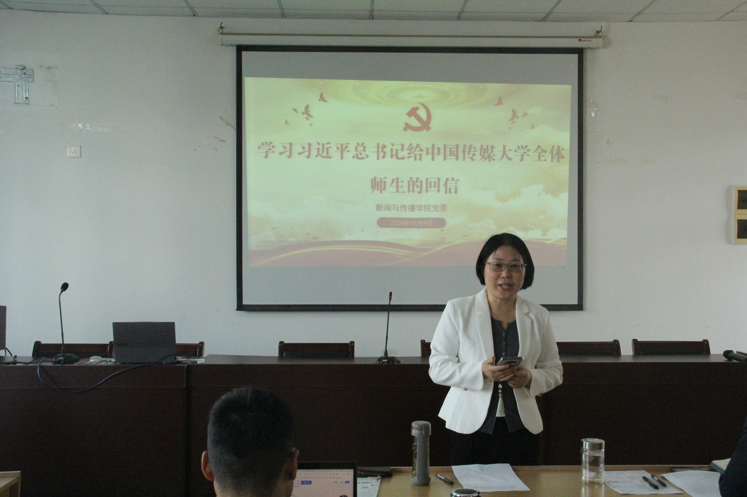 执行经理马梅领学了习近平总书记给中国传媒大学全体师生的回信精神,阐述了习近平总书记对传媒工作的殷切期望和嘱托。她强调,我们要牢记总书记的嘱托,坚定理想信念,勇于担当作为,夯实基础,拥抱新技术,更新教学能力,以各专业“交叉融合”助力高质量新闻传播人才培养,为实现中华民族伟大复兴的中国梦贡献自己的力量。