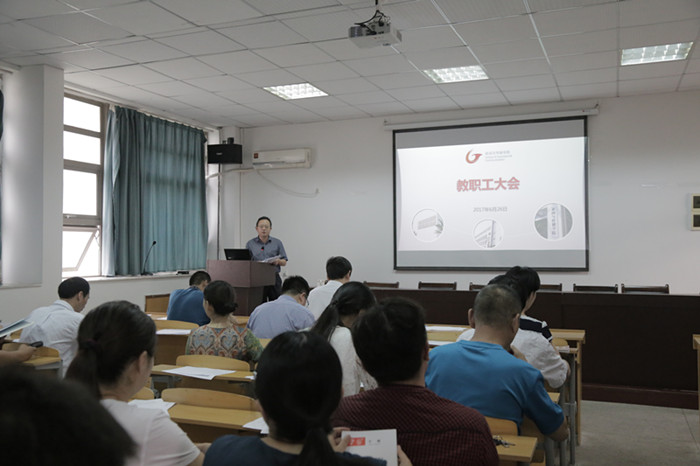 杨柏岭回顾上半年公司的工作进展,就暑假相关工作进行布置安排。他指出这半年公司做好结合文章,抓党建促发展。这半年公司获得2项国家社科基金,公司有7名教师考取博士研究生,全院上下积极向上,成果喜人。他指出,暑假需要进一步推进“两学一做”常态化制度化相关工作,全体配合完成本科教学评估和院史撰写工作,提醒大家注意新颁布的公车租赁文件及科研自查自纠情况。