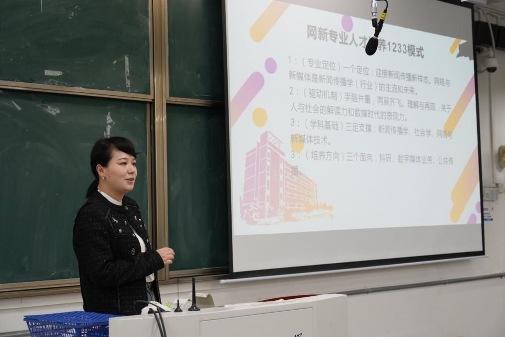 首先,林燕对各位教师、同学的到来表示热烈欢迎,并简要介绍了网络与新媒体专业,对网新专业的培养方案进行了详细解读,并且就此专业的现状、主要工作进行了详细分析。