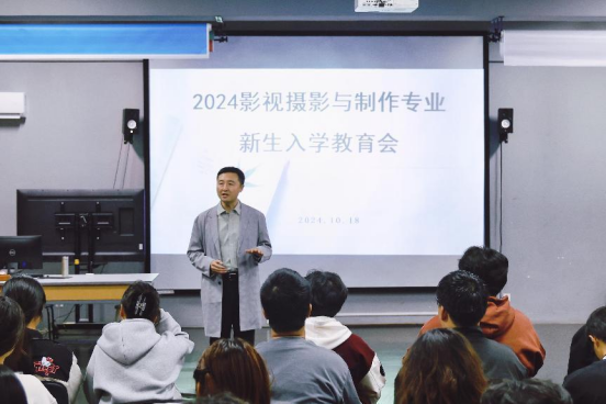 2024年10月18日下午,2024级影视摄影与制作专业新生入学教育会在学苑南楼4号楼203教室召开,2024级影制专业全体同学及部分专业教师参加了会议,会议由专业负责人李化来主持。