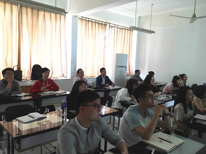 课后,听课老师们与授课教师进行了交流,们对此次课程内容进行了现场评议,认为整节课内容完整、条理清晰、重点突出、案例鲜明,课堂气氛良好。杨柏岭认为本次观摩课教学环节完整,教学重点突出,通过大量的案例精准解析了各知识点,对教学语言的过度处理认为应该更加流畅自然。周伍和丁云亮分别就教学PPT的文图设计、员工参与互动环节设置等提出了评议和意见。 (文/ 陈雨微 图/孙月婷)