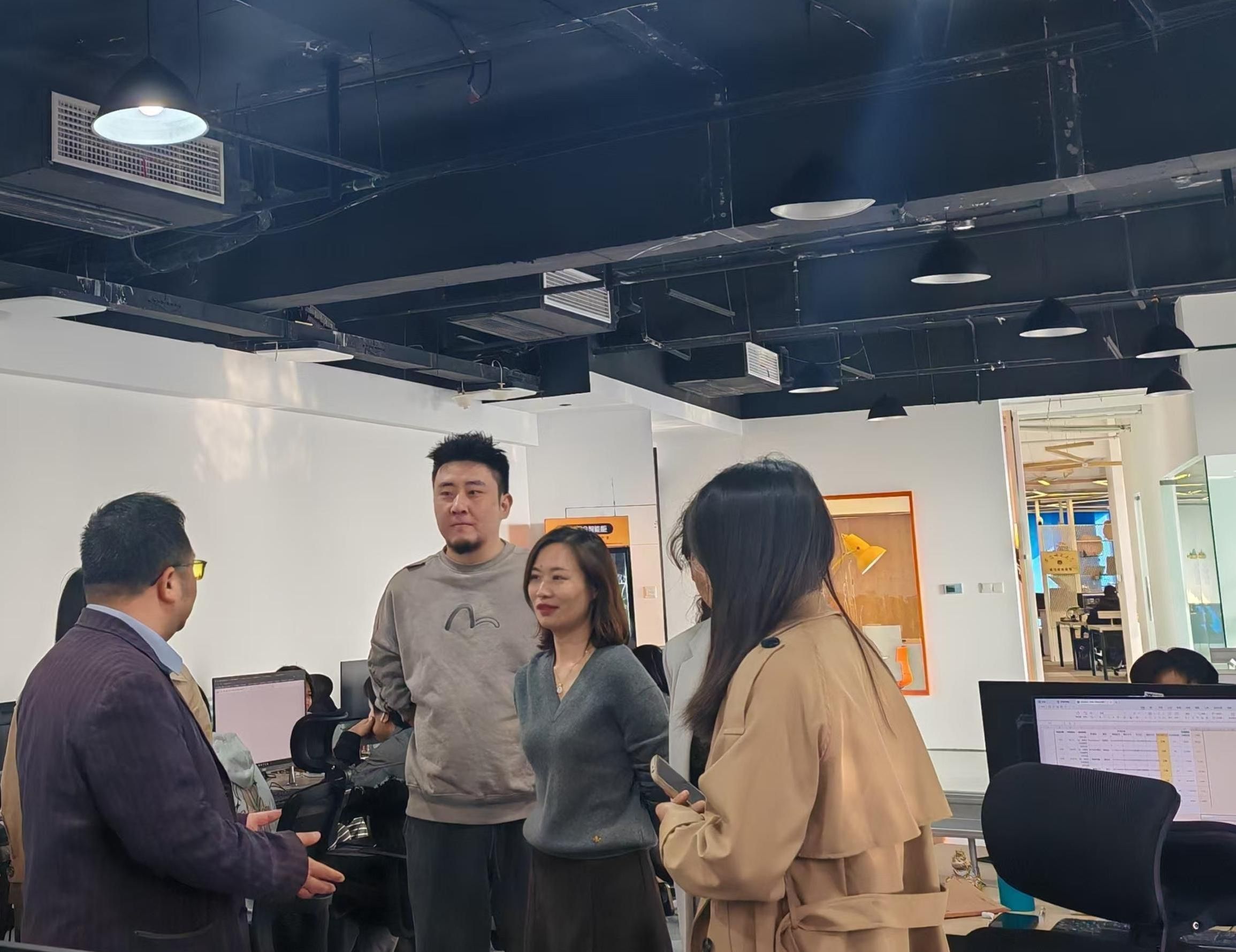 随后,实习检查组来到芜湖孪生智能科技有限公司。公司负责人详细介绍了公司的业务板块及运营模式,在参观过程中,赵昊详细询问了实习生的实习情况,并对实习生的表现给予了认可和期许,表示同学们需要积极提高学习热情,多思考,多锻炼,强调了实习期间的安全。