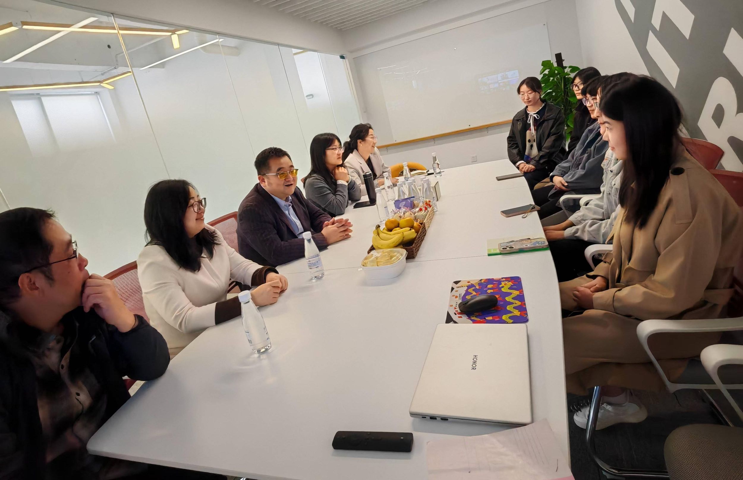 实习检查组一行首先来到了芜湖玩家盟网络科技有限公司,受到了公司领导和员工的热情接待,他们详尽介绍了公司情况。赵昊首先代表公司,对公司长期以来在实习工作方面的支持与配合表达了诚挚的感谢,并简要介绍了公司在人才培养过程中专业实习的设置与执行情况,就员工在公司的实习表现、实习参与及技能提升等方面也进行了全面的交流。