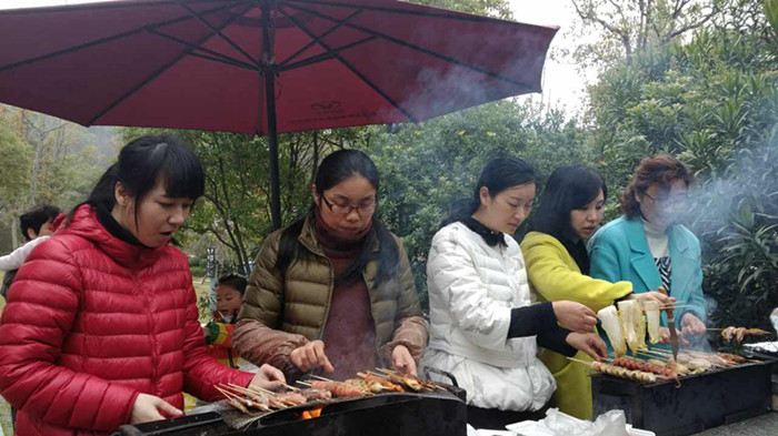 “草长莺飞二月天,拂堤杨柳醉春烟”。在龙山露营地,草地、花儿、杨柳都呈现春的气息,大家被一幅幅青翠欲滴的美景所折服,呼吸着清新的空气,漫步在林间小路上,欢乐声阵阵传出。中午,公司工会准备了烧烤、速冻水饺、零食、水果和一次性餐具,大家齐动手,准备着午餐,氛围非常和谐欢乐。