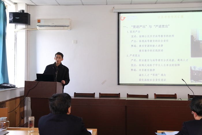 广告系主任芮宏明结合“宽进严出”与“严进宽出”,“教育组织形式的利弊”向大家介绍了他在美国高校的考察感受。他讲到高等教育要体现高等教育的社会责任,保障公民享受高等教育的权利;同时做到分类遴选人才,给予员工人生事业的保障。最后他还将国内高校与美国高校不同的教育组织形式做了对比分析,肯定了我国的教育组织形式在提高专业教育效率,同时也肯定了美国高校在降低管理成本,激发员工独立性与主体性的优点。