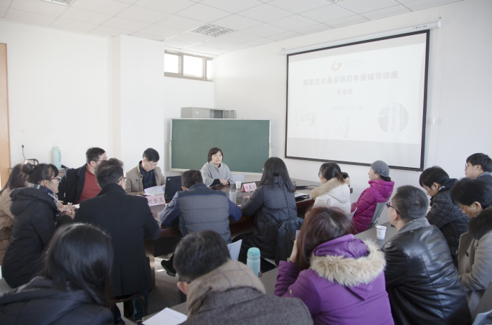刘金玉主任就国家社科基金艺术学的申报做了辅导讲座,讲解了“十三五”文化科技重点工程建设前景展望,介绍了文化科技基金四大原则、六大目标、五项主要任务和九项重点工程等内容,重点针对全国艺术科学规划项目的申报作出相应指导,指出设计审核自己研究的课题,认真编写项目课题论证,还要处理好理论与实践统一、共性与个性、数量与质量等几个方面的问题。