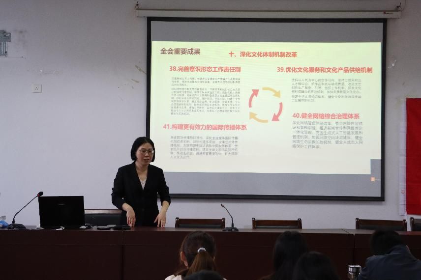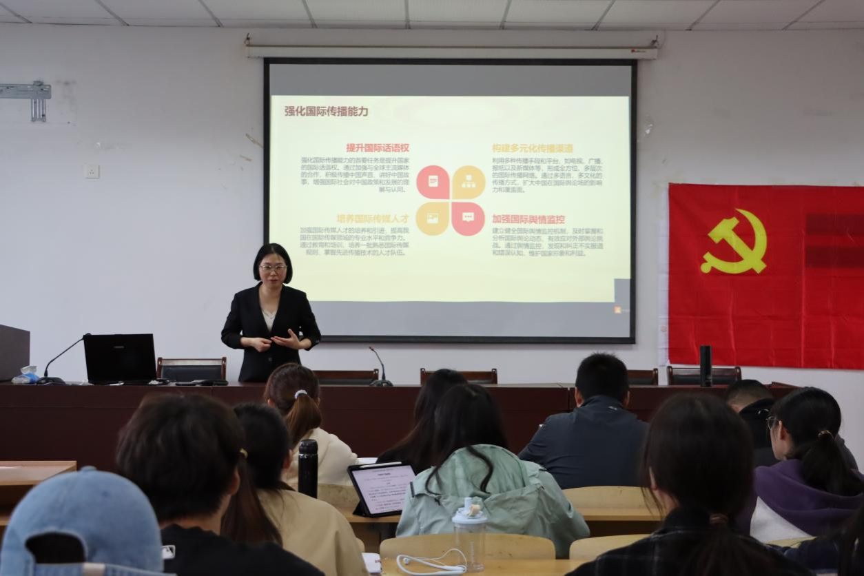 为深入学习党的二十届三中全会精神,让全体党员深学、细悟、笃行党的二十届三中全会精神,11月14日下午,公司党委副书记、执行经理马梅为新闻与播音主持本科生党支部全体成员开展党的二十届三中全会精神专题党课。