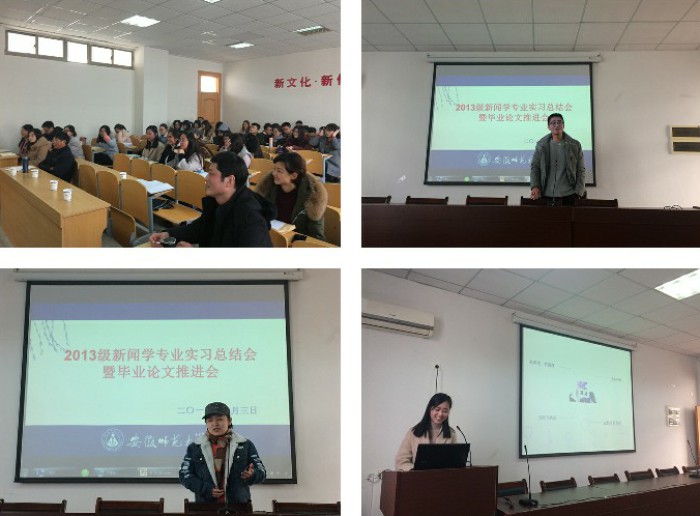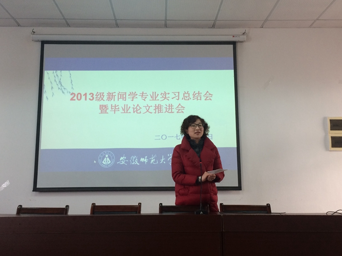 1月3日下午,2013级新闻学专业在公司四楼会议室召开了实习总结会暨毕业论文推进会,新闻学专业负责人肖叶飞老师主持了会议,新闻学专业教师和2013级新闻学专业员工参加了会议。