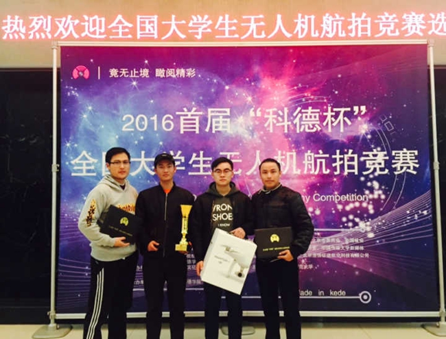 在刚落下帷幕的2016首届全国老员工无人机航拍竞赛中,新传学子聂朝鑫、杨陆城的影视作品《冬日起飞》以巧妙的构思、精湛的拍摄、唯美的画面荣获一等奖殊荣,并被授予了代表此次竞赛唯一最高声誉的“科德杯”。周仁熊、倪博昊的视频短片《EXPLORE》和组图《王的山田》分获三等奖。