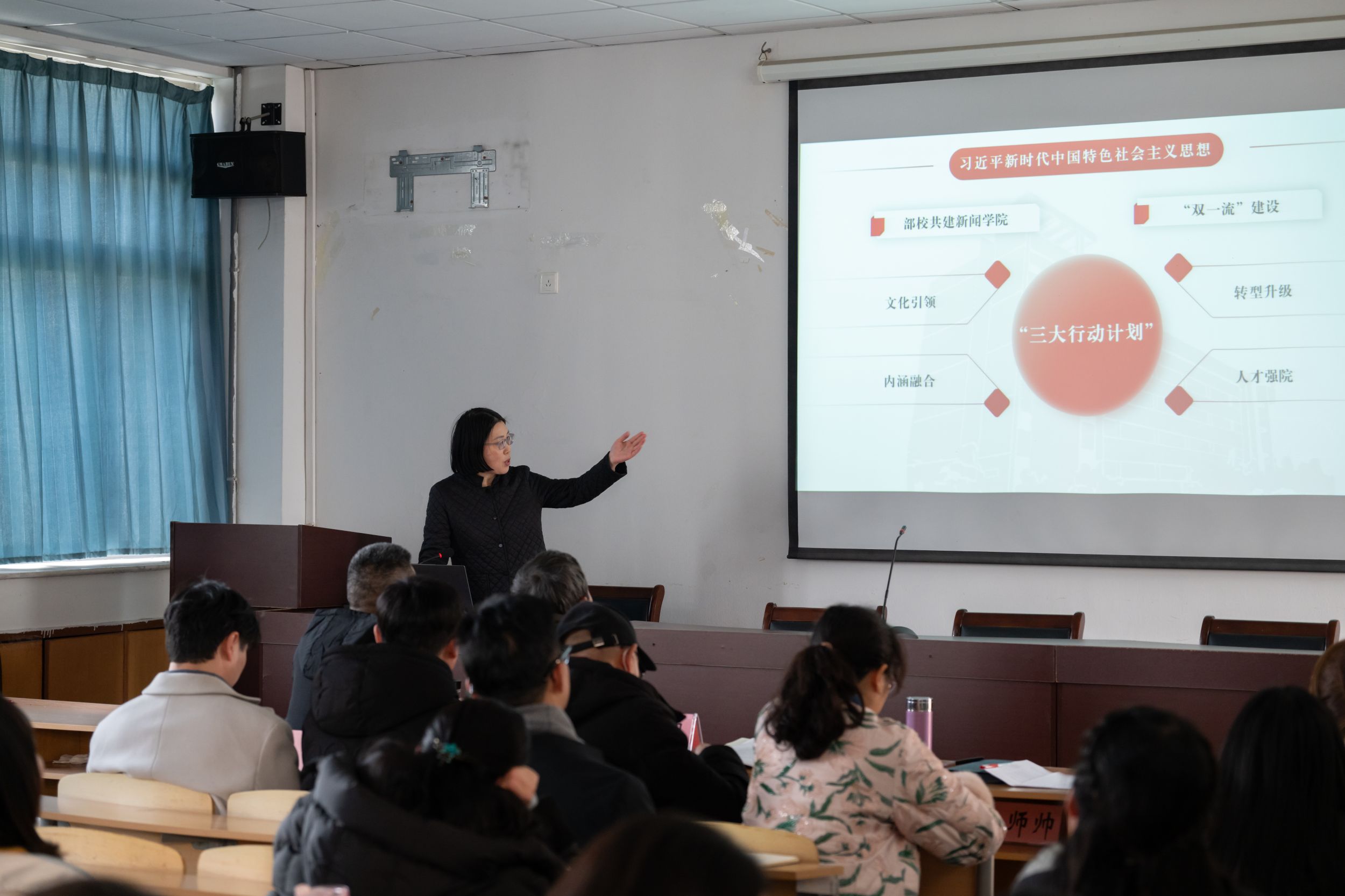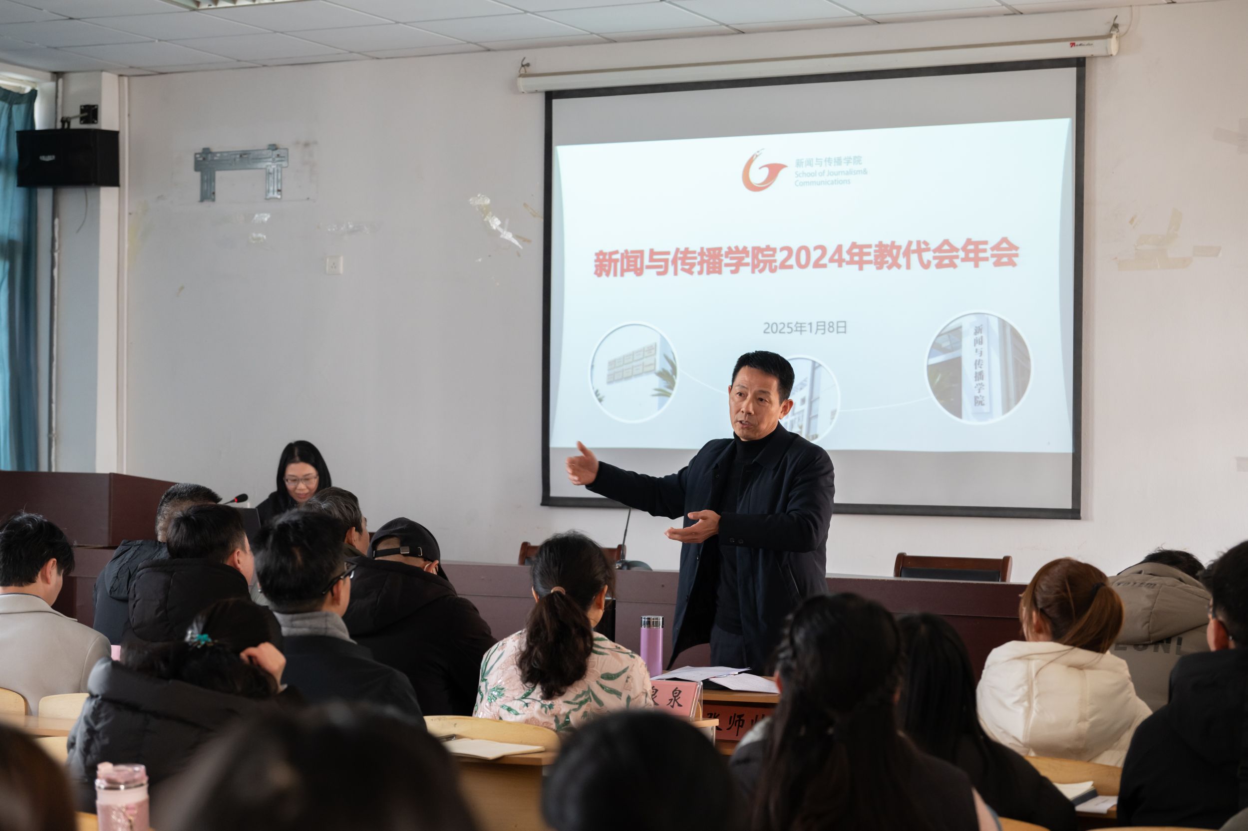 党委副书记吴青山以“坚持培根铸魂,深化员工护航行动”为主题,从加强自身建设、加强队伍建设、认真落实纪委工作三个方面进行了履职汇报。他强调了全员育人的重要性,提出了构筑思政育人阵地、优化实践育人机制、服务员工身心发展、完善资助育人体系及拓展就业育人路径等举措。会上,吴青山鼓励各位老师积极申报老员工护航行动计划课题,寒假期间做好员工的学业护航工作。