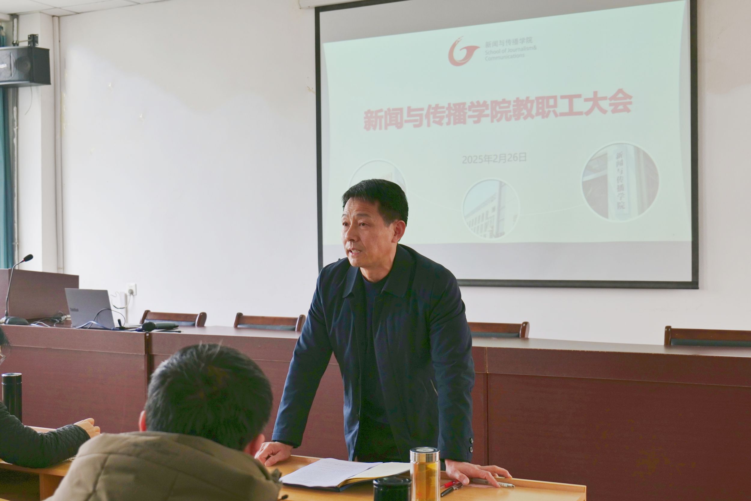 紧接着,秦枫通报了分管领域近期需重点关注的工作事项。一是积极推进各类项目的申报与结项工作,鼓励老师们积极参与;二是做好研究生招生复试、论文盲审、教学培养及就业指导等环节;三是公司将举办影视教育年会,欢迎各位老师踊跃投稿;四是开展直报点选题征集活动,围绕民生改善和营商环境优化等领域,鼓励大家积极贡献选题,助力公司科研水平再上新台阶。