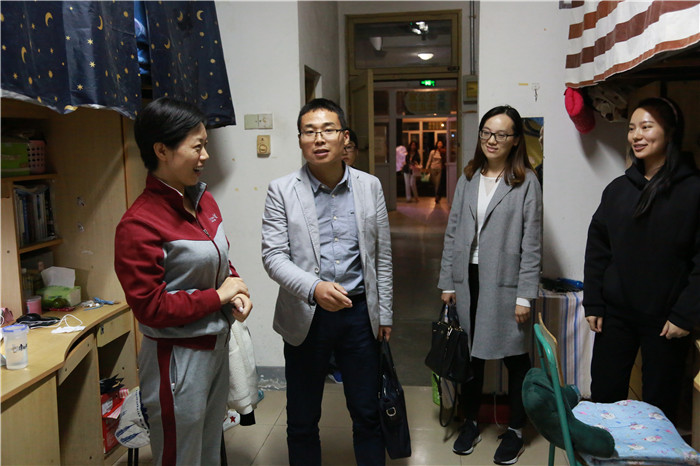 此次查寝中,宋静特别走访了大一新生寝室。新生入学已近一个半月,学习和生活都渐渐步入了正轨。大多数寝室没有违规电器,环境整洁明亮,有些寝室内还摆放了绿色植物,贴上了色调柔和的墙纸,显得温馨而又舒适。但是也有少许宿舍存在接线板拉到床上、物品较多、较为杂乱、未及时开窗透气等问题,领导老师严肃地向同学强调做好寝室安全和卫生工作的重要性,这不仅是对自己负责,还是对他人和公司负责,同学们都表示将会立即整改。宋静亲切地询问新生们是否适应大学的生活和学习,了解其学习、生活状况,细心提醒其“注意身体”、“养成良好的生活习惯”,以积极的姿态融入集体氛围,适应大学的新生活。