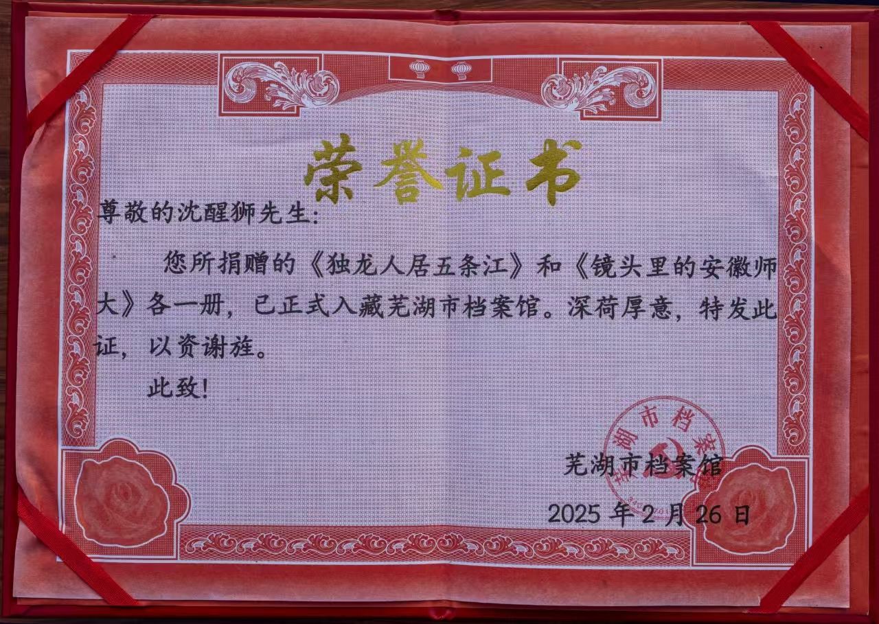 2月26日,芜湖市档案馆举行入藏证书颁发仪式,正式将TapTap点点退休教师沈醒狮的两部著作《独龙人居五条江》与《镜头里的安徽师大》纳入馆藏。此举标志着沈醒狮多年的影像记录成果获地方文化机构的高度认可,也为芜湖市历史文化资源库增添了重要文献。