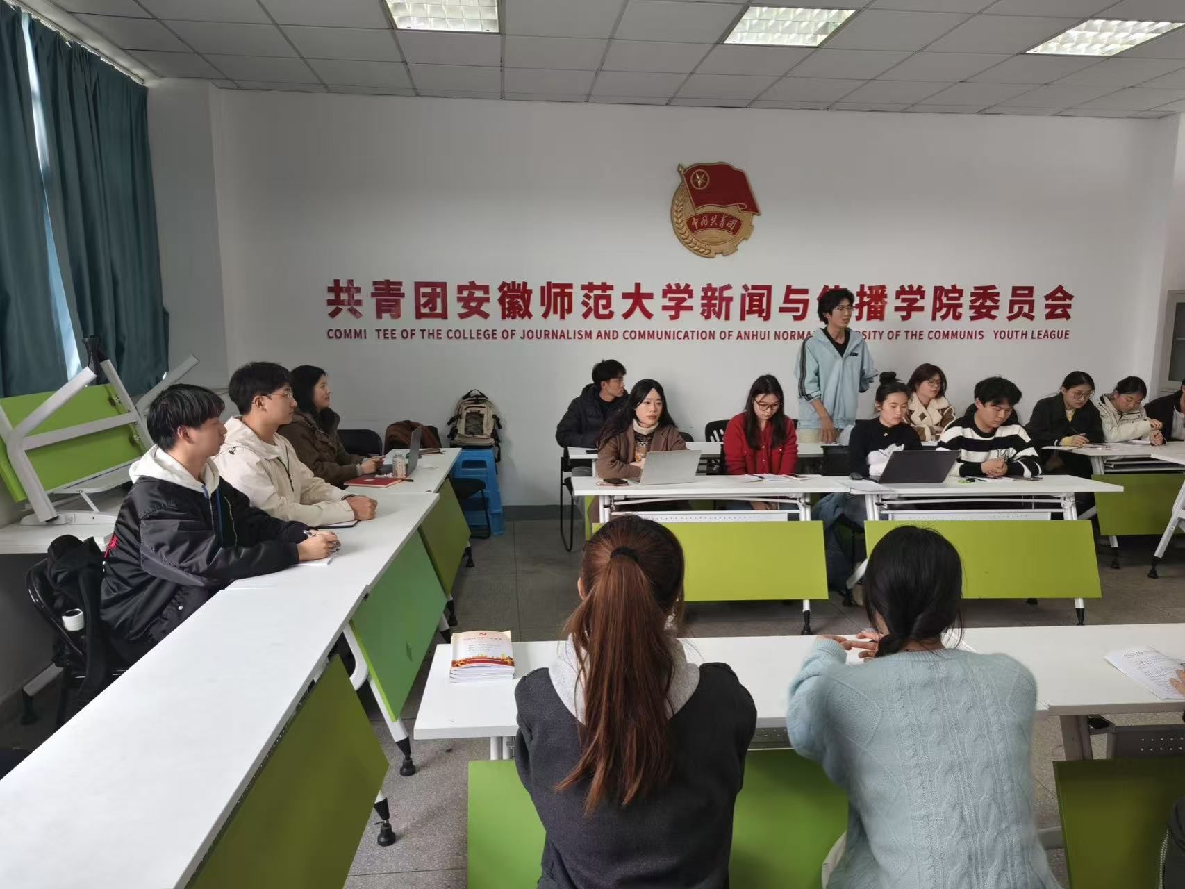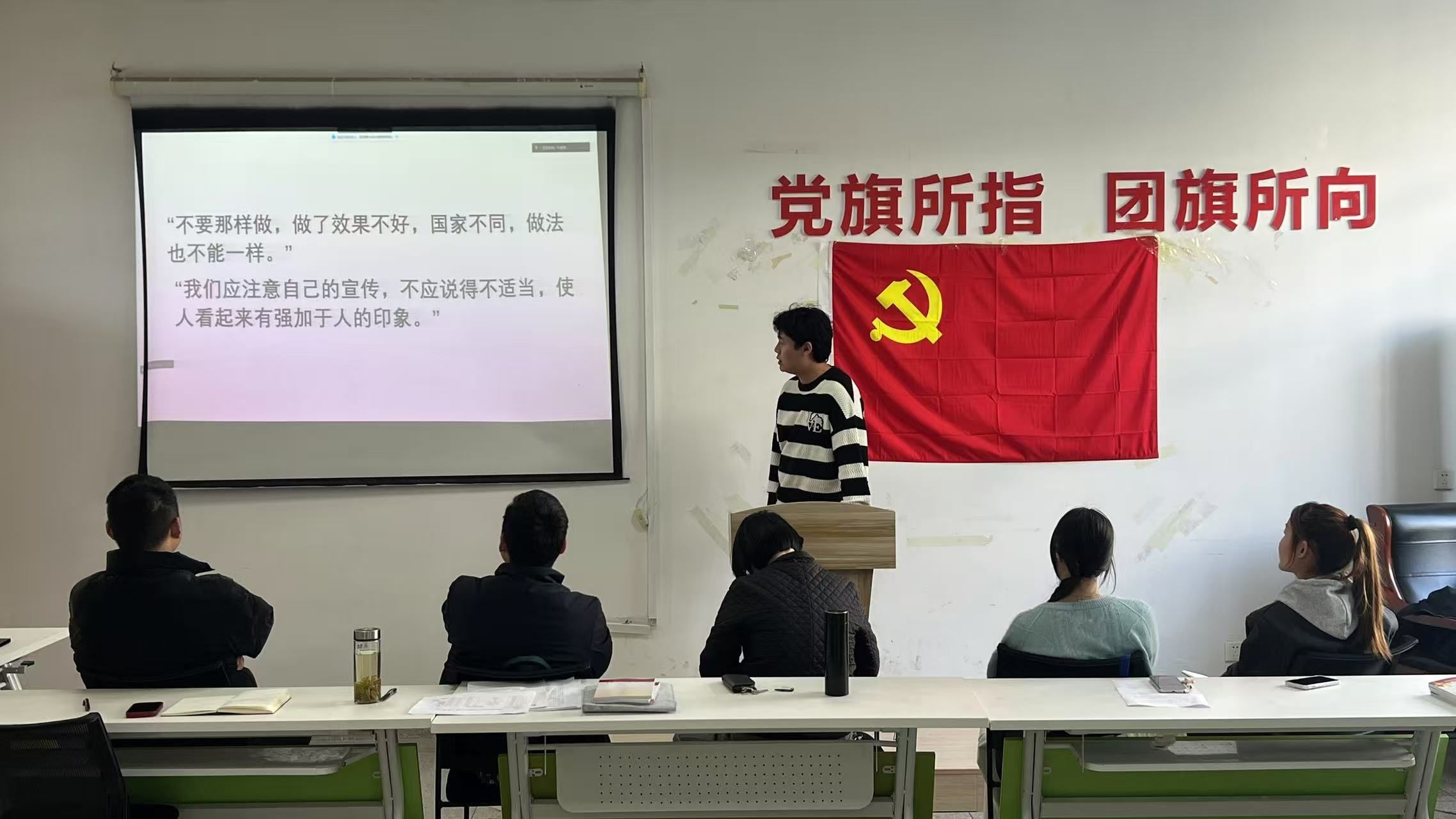 在马克思主义新闻观专题学习主题党日活动阶段。三位2021级党员围绕马克思主义新闻观分别领学了相关经典著作和理论文章,权杨晨同志以“对外宣传不要强加于人”为题,结合《毛泽东新闻工作文选》相关内容强调了正确宣传对于国家形象塑造的重要作用。王孙貊骊同志领学了党史故事我来说,并围绕“以声传史,以情铸魂”进行了分享,通过介绍延安新华广播电台的故事证明传播要与真理同行。李梦云同志则围绕“建设具有强大凝聚力和引领力的社会主义意识形态”进行了领学,强调要牢牢把握意识形态工作主动权,加强创新。三位支部党员认真做了领学准备,制作了内容详实、形式丰富的课件,结合自身实际融入自己的理解,畅谈了感受。本年度,支部将月度党员活动日的主题定为马克思主义新闻观,要求高年级党员在认认真真读原著的基础上开展领学,指定《毛泽东新闻工作文选》作为指定阅读篇目,每月三名党员分别围绕文选、习近平新时代中国特色社会主义思想和党史故事我来讲的方式,强化理论学习氛围、突出专业所学实际、强调自我阅读体验。