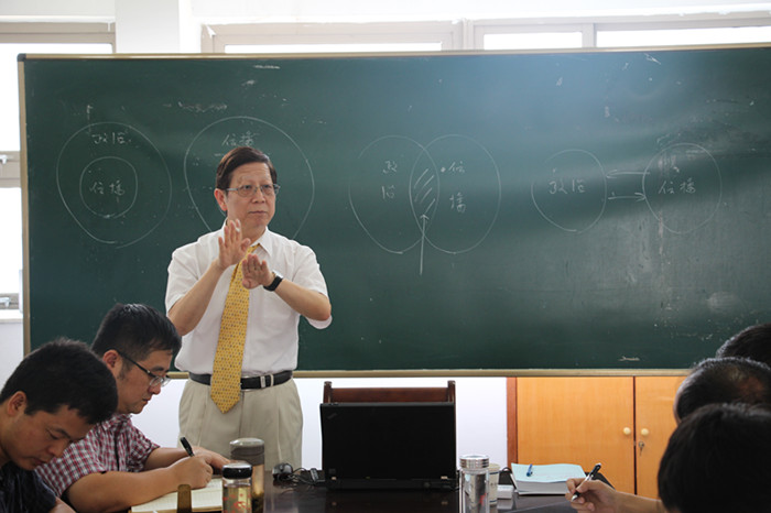 随后,教师和员工代表从科研教学、出国留学、学术研究及研究生论文开题等方面提出了自己关注的问题,在谈及近年来大陆及台湾地区广播电视业遭遇的“断崖式”下滑时,彭怀恩教授全面分析了当今世界范围内纸媒、电视、网络、新媒体的发展现状,提出了纸质书复活、出版业的精包装趋势、传统电视业迅速衰退、报刊读者精英化等观点,并肯定了一些报刊正逐步推动的“专业主义守门功能”。他指出,中国电视业的继续发展,不仅需要政府的大力支持,更要“找到适合的学习范本”。