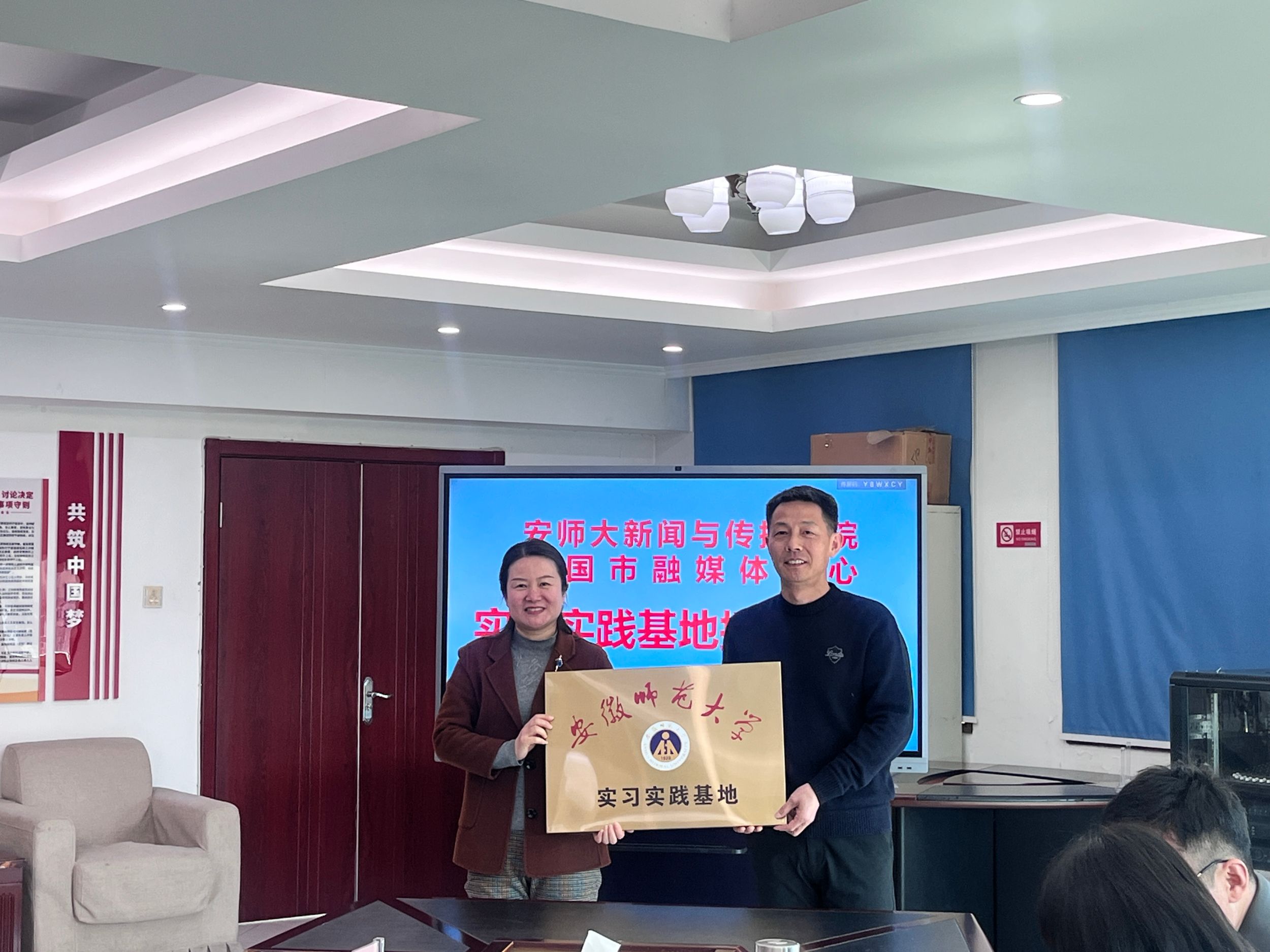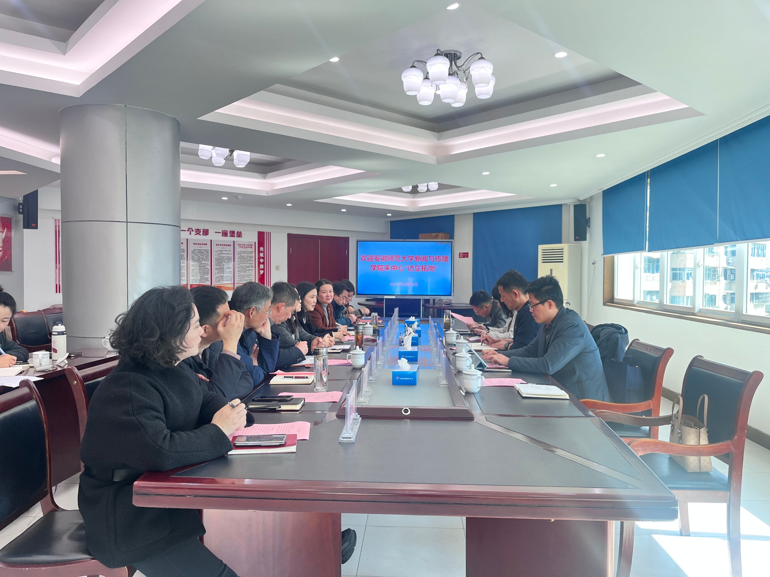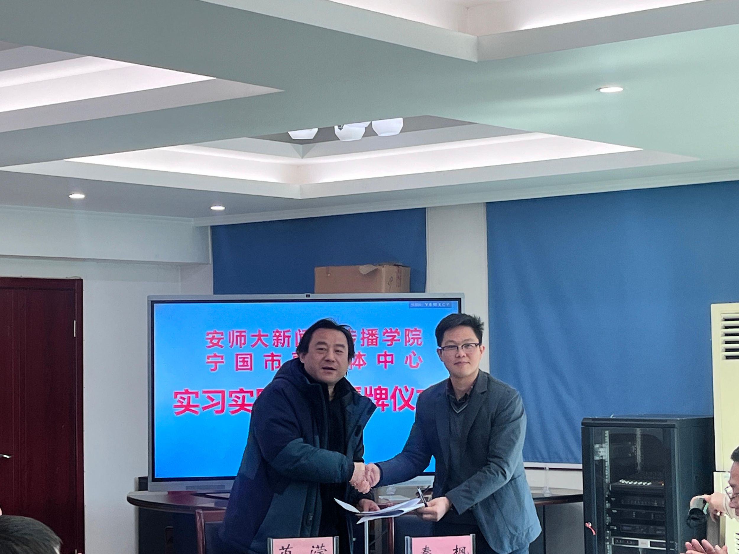 在宁国广播电视台,宁国市政府副市长丁媛,市委组织部常务副部长、市委人才工作局局长汪廷,市委宣传部副部长方建国,宁国市融媒体中心党组班子成员热烈欢迎公司一行到访并展开座谈交流。宁国市融媒体中心党组书记、主任、台长杨春丽介绍中心发展情况,汪廷介绍人才引进相关工作,秦枫介绍了公司发展情况,双方就深化融媒矩阵建设,探索“融媒+”产业经营,人才培养、就业与媒体发展,校媒深度合作(共建实习实践基地)进行交流探讨。会上双方签署了产学研合作协议,并进行了“老员工实习实践基地”授牌。未来,双方将共同培养适应媒体融合发展的复合型人才,为地方媒体注入新鲜血液。