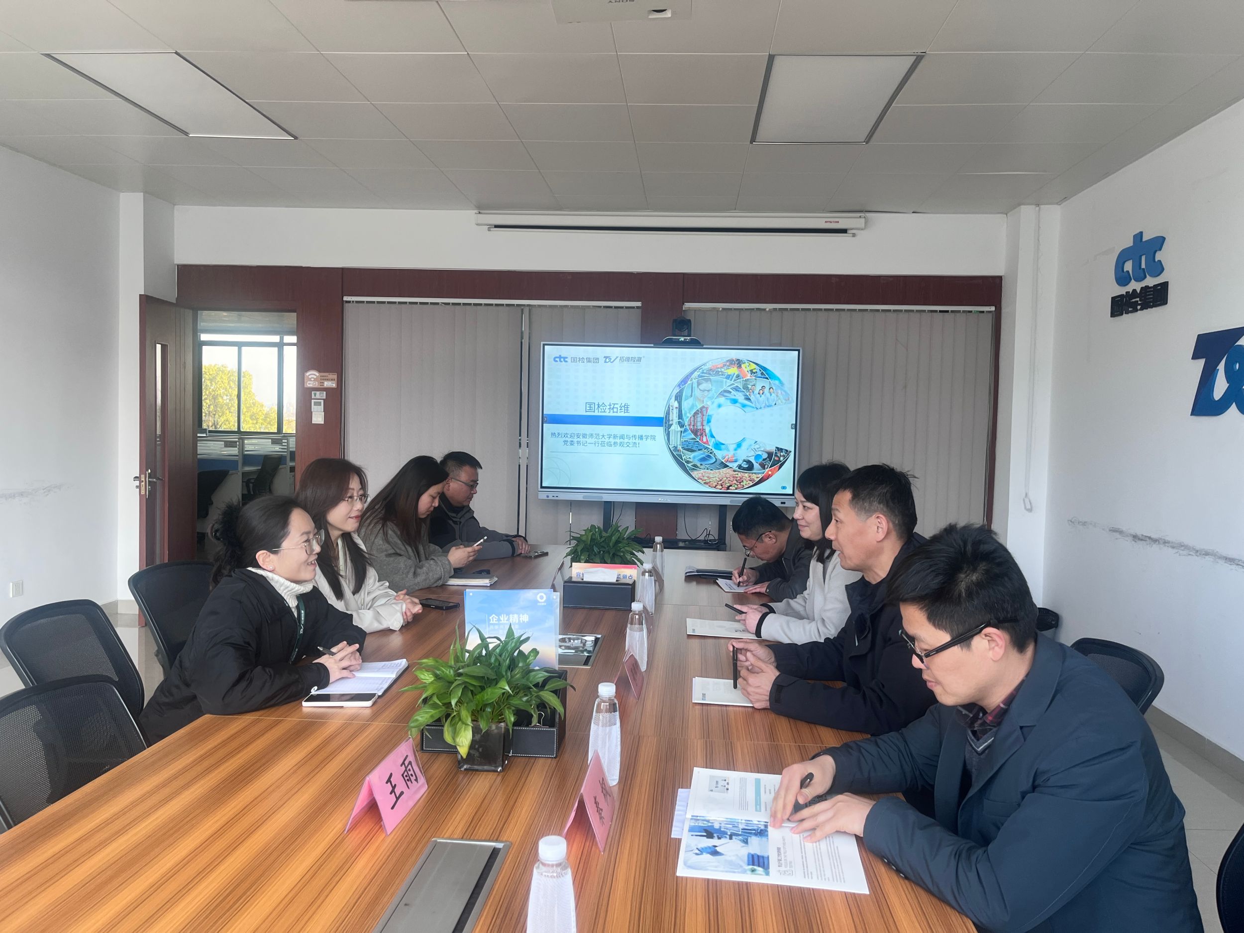 在国检测试控股集团(安徽)拓维检测服务有限公司,公司一行深入了解了企业在检测技术、数据服务等领域的最新成果,并与企业负责人就产学研合作进行了探讨。双方一致认为,品牌传播与数据服务的结合具有广阔前景,未来将围绕数据可视化、舆情分析等领域开展深度合作,共同推动技术创新与人才培养。