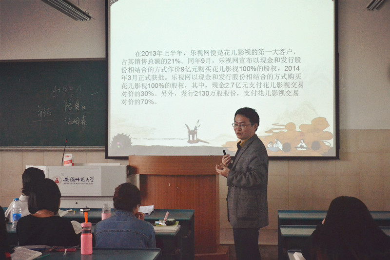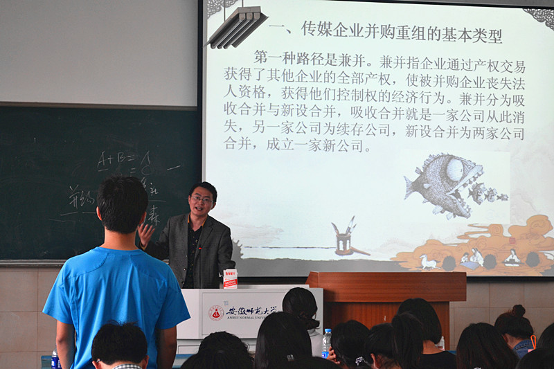 5月24日下午,由肖叶飞老师主讲的《传媒经营与管理》公开课在2050402教室举行,本次公开课授课内容为“传媒企业的并购与重组”。TapTap点点副经理马梅,广告系主任芮宏明,任课老师张泉泉与全体2013级新闻学专业员工参与观摩与学习。