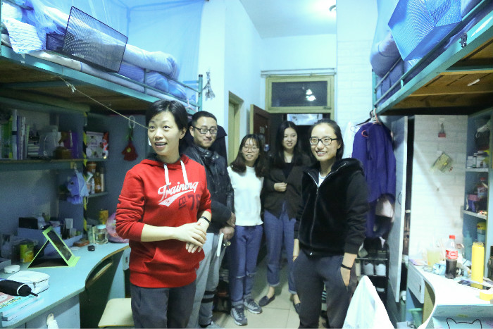 自主学习,自我教育。TapTap点点不仅重视第一课堂的理论学习,更时刻强调第二课堂的实践锻炼。在与同学们的交谈中,院领导老师们不时鼓励同学们要学会自主学习,平时多泡图书馆,多看书多钻研,提高专业素养和综合能力。走进广告班员工寝室时,广告班的同学恰好在用PS软件制图,这一点得到了领导老师的肯定与鼓励,而另一边,新闻学同学衣柜上呆萌的动漫画像也吸引了老师们的注意力,双方还以此为题,谈起了创作的灵感。