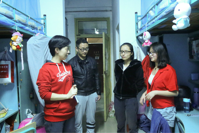 细节之处,尽显温情。每走到一个寝室门前,领导老师们都会小心敲门、轻声询问,详细了解了同学们的学习与生活情况,表示如果有需要可及时向公司反映,公司会尽可能地给予支持与帮助。同学们也主动与领导老师们进行交流,大一同学就近期的“辅修课程”咨询了很多细节方面的问题,老师也都耐心详细地做了回答;还有同学则和领导老师交流了自己物品“收纳”的小技巧,令寝室内的气氛一派轻松自在。